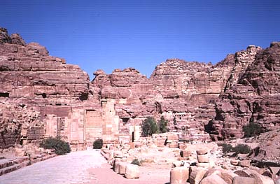 盆地のはずれから岩山を登る細い山道が続いている。 頂上にエド・ディルと呼ばれる修道院跡があるらしい。 日なた摂氏46度、日かげ35度。 かなり暑くなってきたががんばって登ってみることにする。