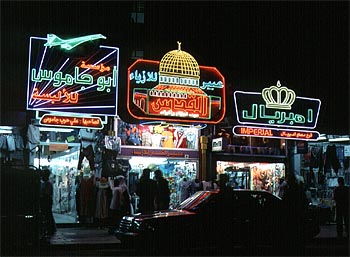 夜はネオンもまばゆい。