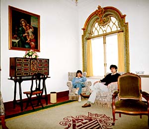 通された部屋は,スイートでした。左右に大きな寝室とリビング,真ん中に大理石のバスルーム,装飾のほどこされた大きなベッド,古風な家具や調度,絵画や装飾品,テーブルに並べられたたくさんの果物。なるほど・・・ここはサンタ・イサベル女王の部屋だったのかもしれません。
