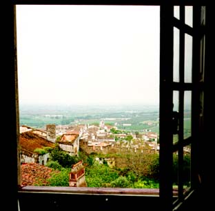 窓から眺める景色,白い中世の町並み,緩やか丘陵,城壁の下では羊飼いが羊を下の町に導いている。静けさの中で首につけた鈴の音だけがあたりに響きわたっている。イサベル女王も日がな一日この景色を眺めていたんだろうな・・・