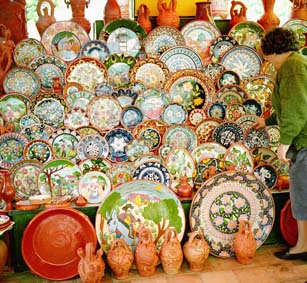 市場では素焼きの瀬戸物が売られていた