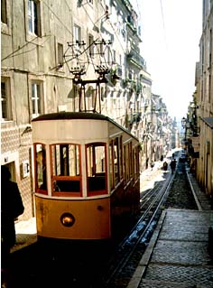 坂の町リスボンにはケーブルカーが所々にあります。でも歩く速さとたいして変わらない。