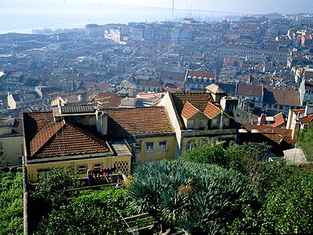 いつしか丘の上の城跡のようなところに・・・・・ここはサンジョルジュ城。リスボンの町が一望でき人々の営みがかいまみれます。背後ではテージョ側の大きな河口が見える。