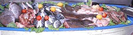早速、海辺のレストランへ・・・ ここはリゾートと言うよりもともと漁師の町。 新鮮な魚介類がそのままレストランに持ち込まれる。