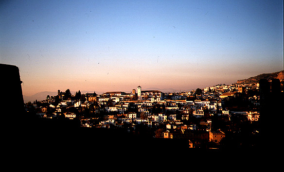 そんなこんなですぐ夕方になってしまいました。アルハンブラ宮殿の入り口で門前払い。あたりはあっと言う間に暗くなってきました。谷を隔てた反対側の集落が夕日に映えてものすごく綺麗です。しばらくぼーっと眺めてました。