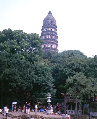 ピサの斜塔のような塔が丘の上にそそり立つています。