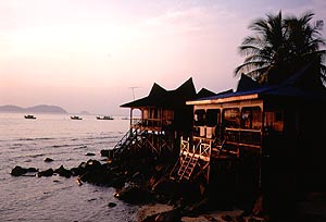 桟橋にもどり、海沿いのバンガローをいくつかあたってみます。 サランインダーというところが2棟あいていて、 そのうちの一つは テラスが海に突き出た高床式のもの、 迷わず決めました。