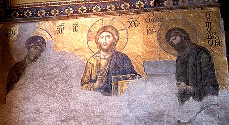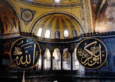 ここは、イスタンブールにあるアヤソフィア大聖堂です。元々ギリシャ正教の教会だったのですが、いわゆるコンスタンティノープルの陥落でオスマントルコに征服された後、時の王メフメット2世が壁を漆喰で塗りつぶすなどして、モスクに変えてしまいました。