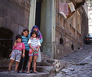 アクサライというところで空港からのバスを降りました。南回りの長旅の疲れをいやすのにぴったりの、たとえばボスフォラス海峡に浮かぶ船を窓から望めるめるようなホテルをイメージして、私たちは宿探しを始めます。