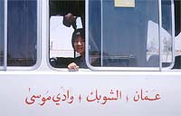 あふれるアラビア語の行き先看板を眺めながらうろうろしていると、男の人が近寄ってきてペトラへの行き方を事細かに教えてくた。そして、いつのまにかセルビス(乗り合いタクシー)に乗せられて別のバステーションへ。