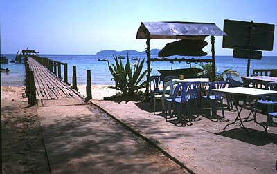 桟橋を渡り終えるとさっそく宿の客引きのおじさんに声をかけられます。 とりあえず、ついていくことにしす。 歩いていると小道を横切ろうとしているイグアナにさっそく出会います。 体長1mくらい。でもなぜかあまり驚かなかなかった。 周りの雰囲気があまりにも ぴったりだったので別に驚くに値しなかったのかもしれません。