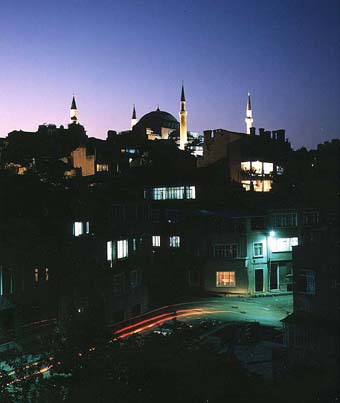 やっといい宿を見つけられました。望んだとうり海峡の見える部屋、隣にハマム(トルコ式蒸し風呂)もあるし・・・屋上からはブルーモスクも見えます。夜はきれいでした。