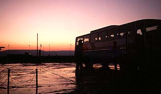 バスは、コンビナートの明かりが煌々と輝く工場地帯の中を走ります。速くもなく遅くもなく以外にも堅実な走りです。所々ドライブインで休憩します。なかなか寝付けない私は泊まるごとにお茶を飲みに外に出ます。ある時、後ろの席のおじさんにお茶をおごってもらいました。大変親切な人なのですが妻にとってはよくなかったようです。と言うのも寝てるといすの間から手を出してきてさわろうとするらしいのです。そのたびに地球の歩き方を丸めてぐいぐい押し戻していたとか・・・。そんなこと露とも知らない私は・・・ ”トルコの人はみんな親切だなあ・・・”